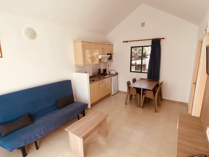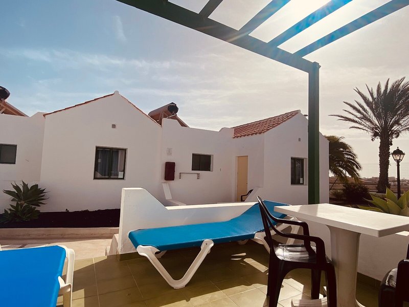 Elhelyezkedés és környék A bungalókomplexum Fuerteventura gyönyörű szigetének központjában, Caleta de Fuste csendes részén található. A nyugalom és a kikapcsolódás mellett számos sportolási lehetőség, éttermek, bevásárlóközpontok, sétaútvonalak és természetesen éjszakai klubok várják a vendégeket. A komplexumtól mindössze 600 méterre található Caleta de Fuste csendes és egzotikus strandja. A közelben bevásárlóközpontok, tömegközlekedési megálló található, az egyedülálló sportkikötő pedig kb 15 percre található. Fuerteventura repülőtere körülbelül 8 km-re található.