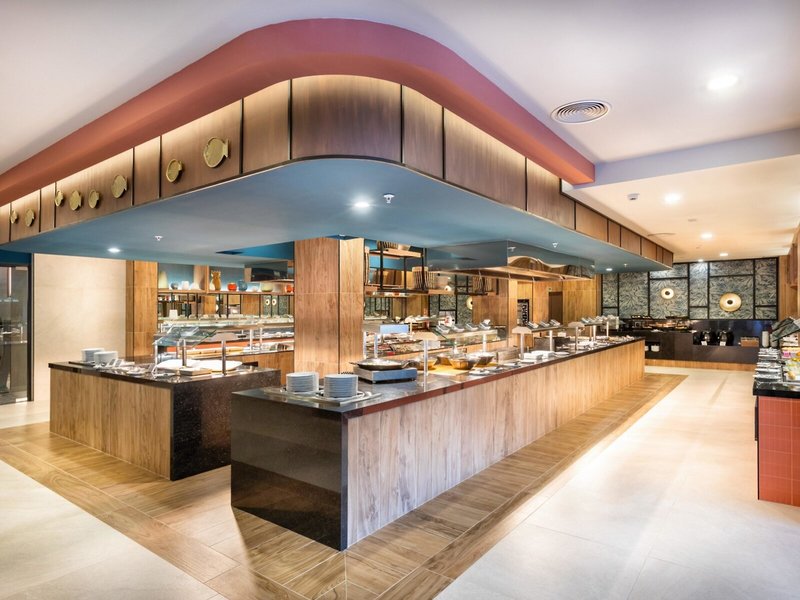 - Hauptrestaurant: Küche: international, vegetarische Gerichte, Buffet, Showcooking, mit Terrasse, Kinderhochstuhl, angemessene Kleidung erwünscht