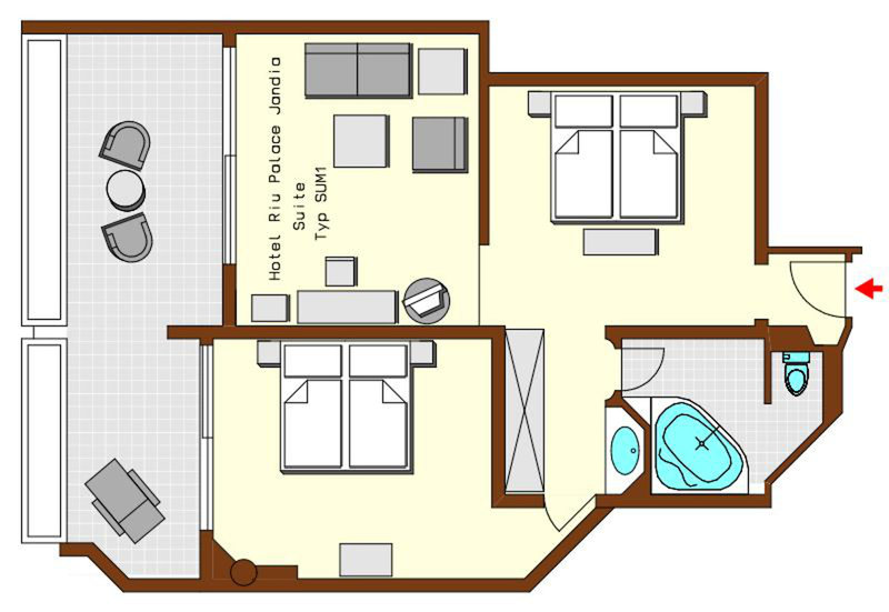 - Lakosztály kilátással a tengerre (SUM2), Lakosztály, kilátással a tengerre, kb. 62 m², összesen szobaszám ebben a szobatípusban: 2, elrendezés: nappali/hálószoba, 1 hálószoba, 2 egyszemélyes ágy (110x200 cm), 1 king-size ágy (200x200 cm), babaágy: ingyenes, kérésre, légkondicionálás: központilag vezérelhető, széf: ingyenes, vízforraló, telefon, minibár, kanapé: WLAN/WiFi: ingyenes, televízió: német csatornák, műholdas TV, zuhanyzó, WC, fürdőköpeny: ingyenes, hajszárító, erkély vagy terasz: ülőgarnitúrával