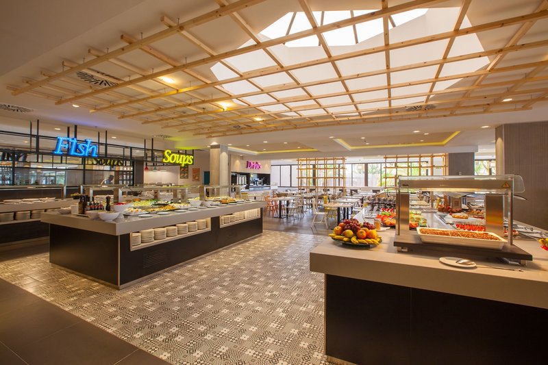 All inclusive: büféreggeli, ebéd és vacsora. Hetente többször & Go: olasz (pizza, bruschetta stb.), Burger és Healthy Space (gyümölcs, vegetáriánus ételek stb.) Helyi alkoholos és alkoholmentes italok 11-23 óráig Recepció 24 órás italválasztékkal.