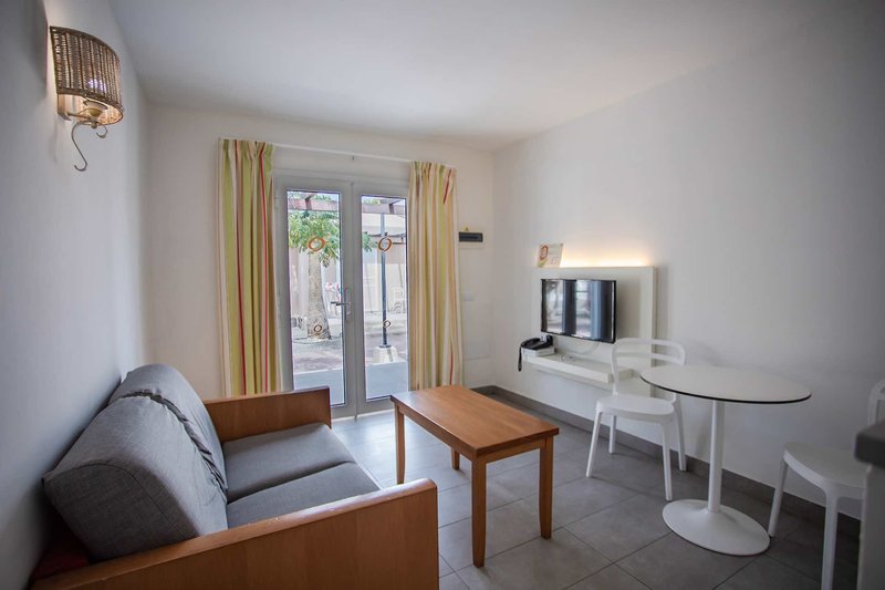Bungalow 1 Schlafzimmer: Die einladenden, ca. 42 m² großen Bungalows verfügen über ein kombinierten Wohn-/Schlafraum mit Schlafgelegenheit für die 3. Erwachsene Person oder 1 Kind, Sat.-TV gratis (Fernbedienung gegen Kaution), Klimaanlage (Fernbedienung gegen Kaution), Mietsafe, separates Schlafzimmer, Kitchenette mit kleinem Kühlschrank, Mikrowelle, Kaffeemaschine, Toaster und Wasserkocher, Badezimmer mit Badewanne oder Dusche und Föhn sowie eine möblierte Terrasse. Es sind teilweise Stufen vorhanden (B12).