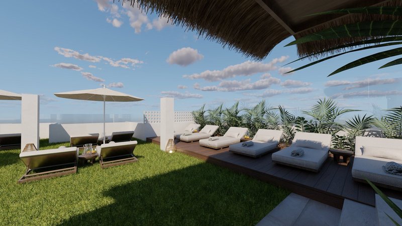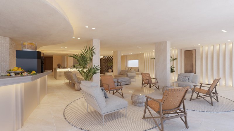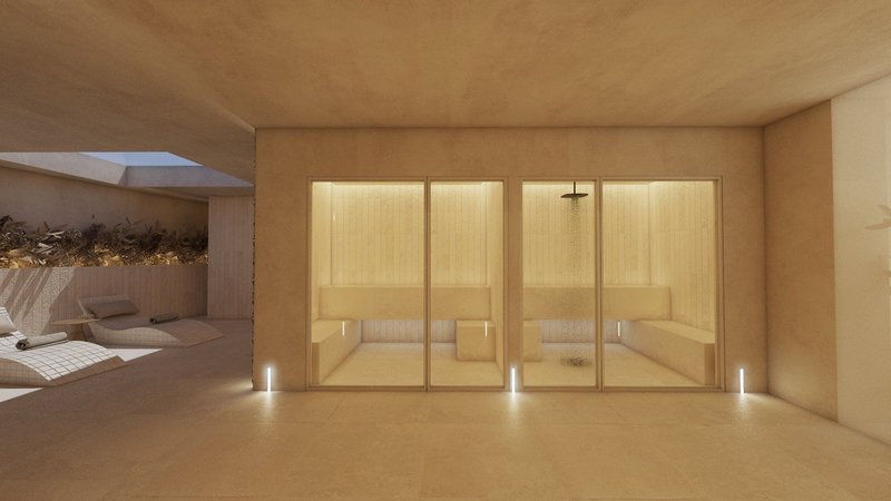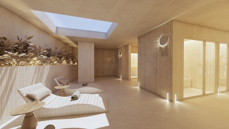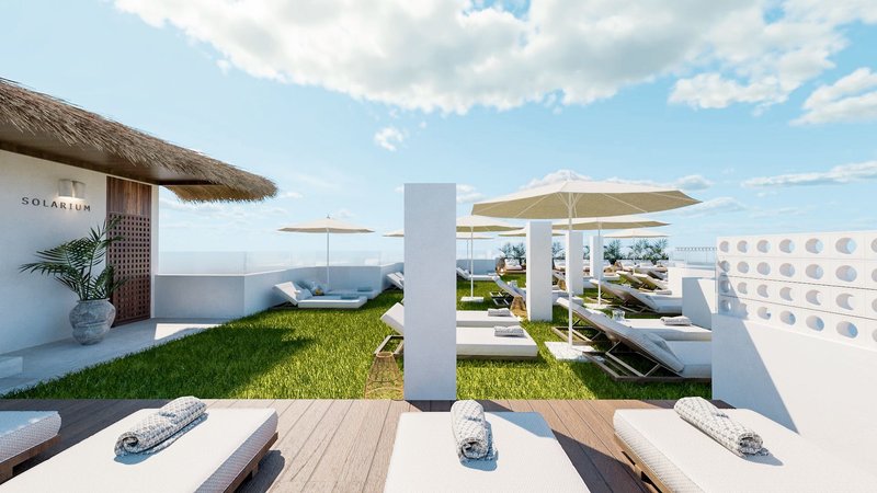 In den Außenbereichen befinden sich 2 Swimmingpools (1 davon im Winter beheizbar) jeweils mit Sonnenterrassen, Liegen und Sonnenschirmen. Zudem gibt es eine Dachterrasse mit Liegen und einen atemberaubenden Meerblick. Auf einer anderen Dachterrasse befindet sich ein separater FKK-Bereich mit Liegen.