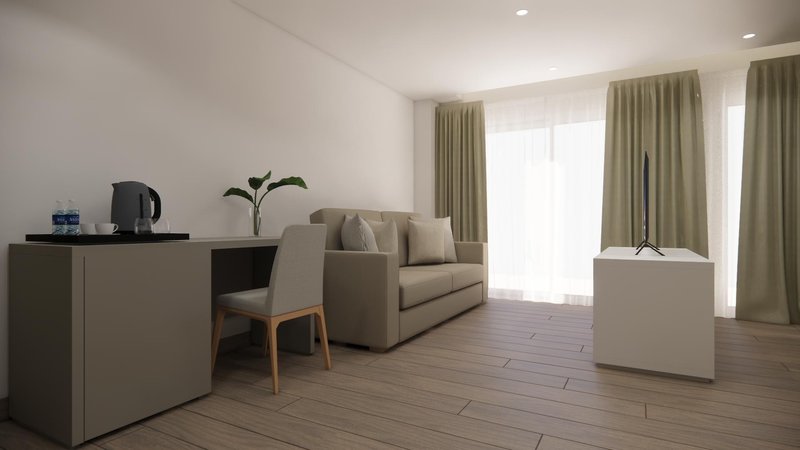 Ausstattung: Das Hotel besteht aus 3 Gebäuden mit insgesamt 115 Wohneinheiten verteilt auf 5 Etagen. Dem Hotelgast stehen ein Empfangsbereich mit Sitzgelegenheiten und Rezeption, Kaffee- und Teebereich, Wi-Fi (gratis im gesamten Hotel) und ein Restaurant zur Verfügung.