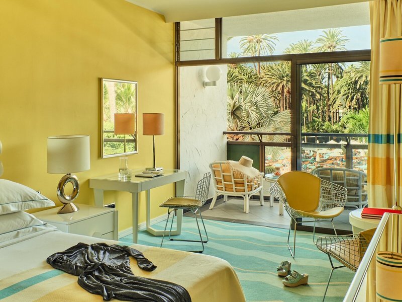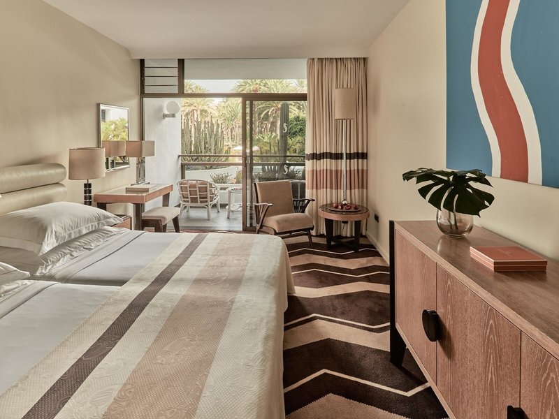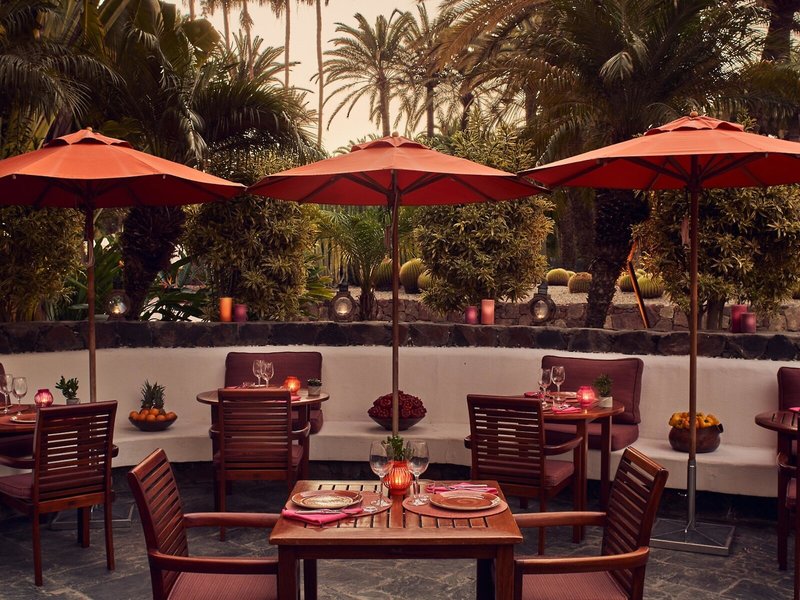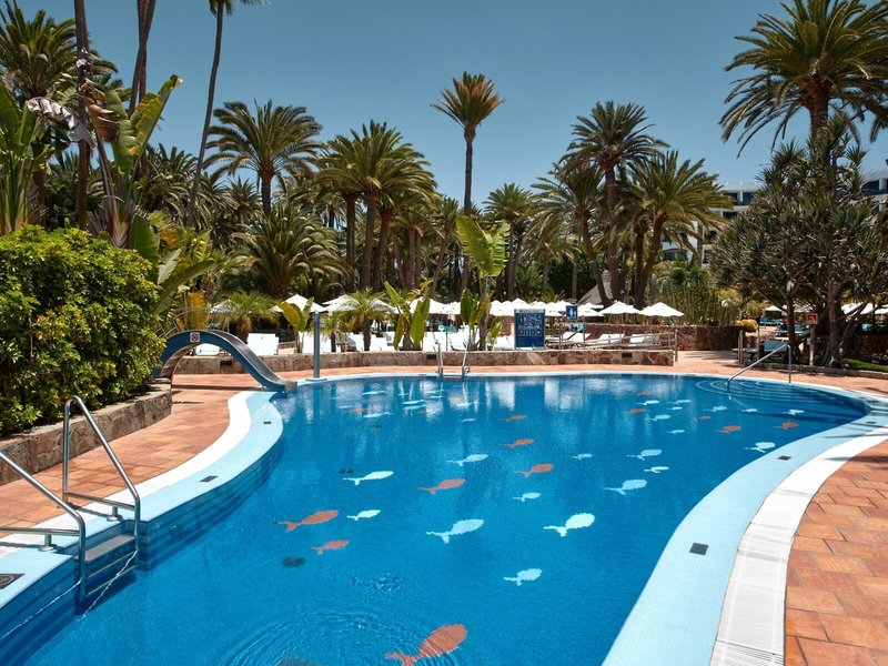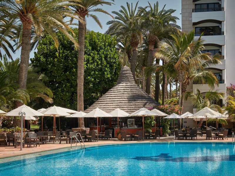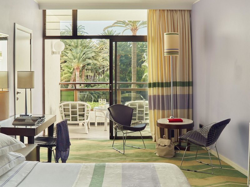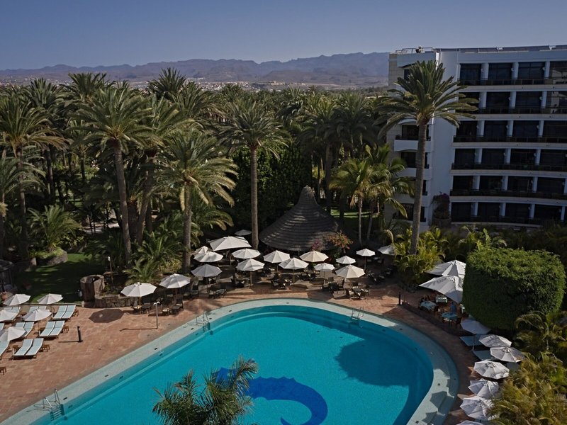 Lage & Umgebung Das Hotel liegt inmitten einer wunderschönen, einhundertjährigen Palmenoase am Rande eines Naturschutzgebietes. In unmittelbarer Nähe, ca. 70 m, liegt der 6 km lange, naturbelassene Sandstrand, die Promenade sowie die Dünenlandschaft von Maspalomas. Zu den exklusiven Boutiquen, Juwelieren und Bars an der Promenade „Meloneras" sowie zur Bushaltestelle sind es ca. 300 m. Transferzeit: ca. 40 Minuten.