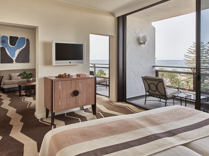 - Junior lakosztály (JSX1), junior lakosztály, kilátással a tengerre vagy a kertre/medencére, kb. 34 m², összesen szobaszám ebben a szobatípusban: 1, elrendezése a következő: kombinált nappali/hálószoba, babaágy: térítésmentes, kérésre & foglalás szükséges , légkondicionálás: ingyenes, padló: szőnyeg, széf: ingyenes, ülősarok, íróasztal, kávéfőző, vízforraló, minibár: térítés ellenében, telefon, Internet: WLAN/WiFi: ingyenes, televízió: lakás képernyő, a nappaliban, a hálószobában, német program, műholdas TV, szobaszerviz: naponta 8:00 - 12:00, térítés ellenében, takarítás: naponta, ingyenes, napilap: ingyenes, fürdőkád vagy zuhanyzó, wc, fürdőköpeny: térítés ellenében, papucs: térítés ellenében, Hajszárító, kozmetikai tükör, erkély: ülőgarnitúrával