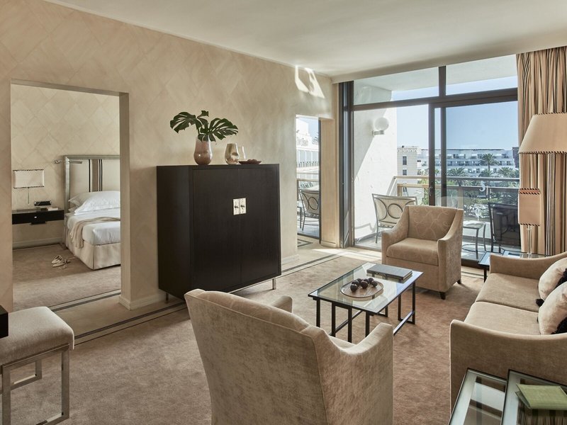 - Master Suite (JSX3), Suite, Blick auf Garden and Pool, ca. 41 m², Gesamtanzahl der Räume in diesem Zimmertyp: 1, Aufteilung wie folgt: kombiniertes Wohn-/Schlafzimmer, Babybett: ohne Gebühr, Anfrage & Reservierung notwendig, Klimaanlage: ohne Gebühr, Fußboden: Teppichboden, Safe: ohne Gebühr, Sitzecke, Schreibtisch, Espressomaschine, Wasserkocher, Minibar: gegen Gebühr, Telefon, Internet: WLAN/WiFi: ohne Gebühr, Fernseher: Flatscreen, deutsches Programm, Sat-TV, Roomservice: täglich 08:00 Uhr - 00:00 Uhr, gegen Gebühr, Reinigungsservice: täglich, ohne Gebühr, Tageszeitung: ohne Gebühr, separate Dusche, Badewanne, WC, Bademantel: ohne Gebühr, Slipper: ohne Gebühr, Föhn, Kosmetikspiegel, Balkon: mit Sitzgelegenheit