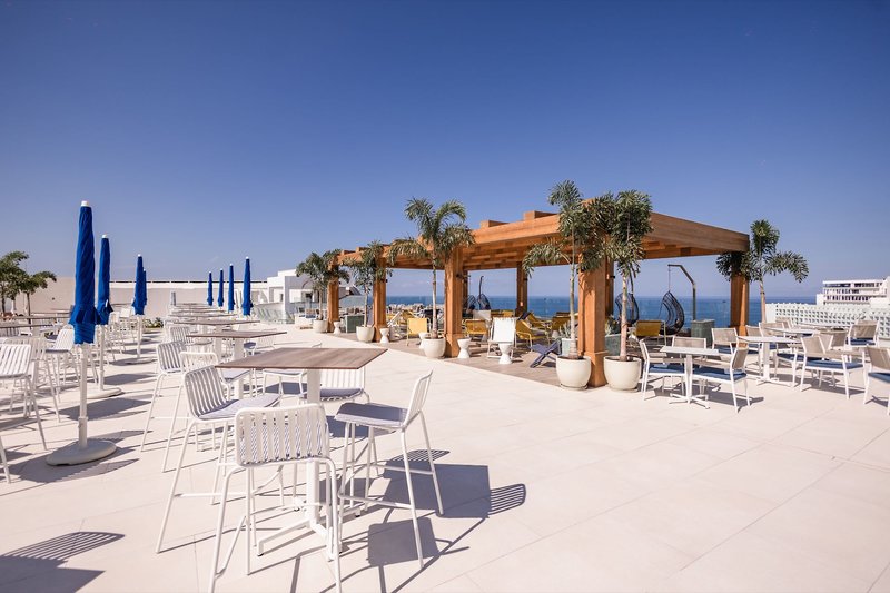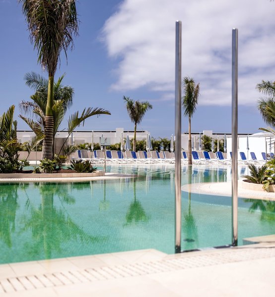 Der Außenbereich bietet mehrere Swimmingpools (im Winter beheizbar) an, darunter ein separates Kinderbecken, ein Infinity Pool, Wasserrutschen sowie ein Adults-only Pool und Whirlpool (ab 18 Jahre) in einem separaten Bereich mit Meerblick, Sonnenterrassen mit Liegen und Sonnenschirmen sowie eine Pool-/Snackbar.