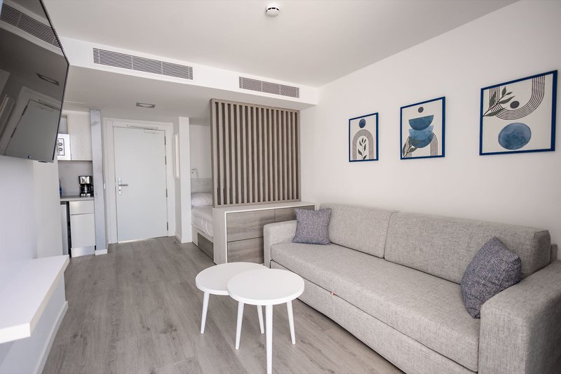 Classic Juniorsuite Typ B: Gleich ausgestattet wie die Doppelzimmer Superior, jedoch geräumiger (ca. 35 m²) und zusätzlich mit einem separatem Schlafzimmer, Mikrowelle, Toaster und eingeschränktem Meerblick (J2B).