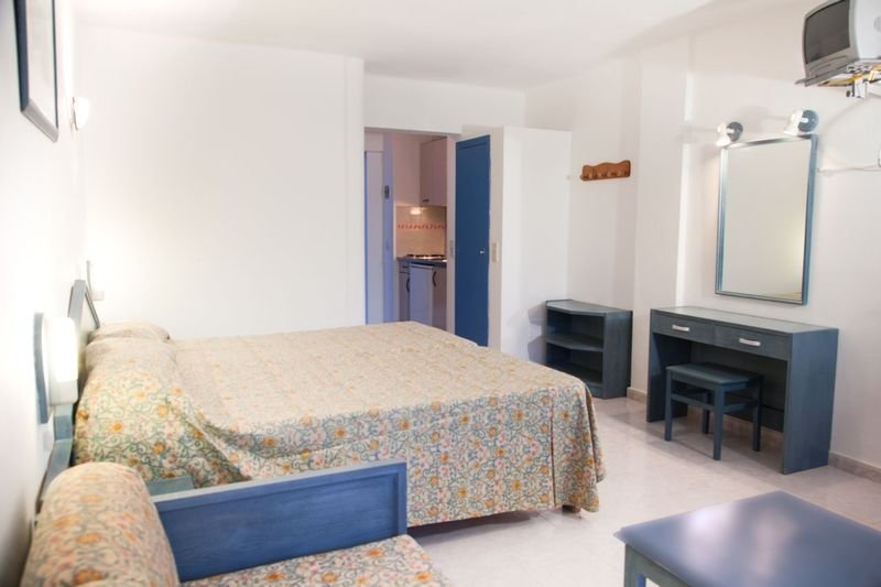 Die zweckmäßig eingerichteten Studios verfügen über einen kombinierten Wohn-/Schlafraum, eine Kitchenette, Bad oder Dusche/WC, Klimaanlage, Minikühlschrank und Balkon. Kleinere Einzelzimmer ohne Kitchenette stehen bei sonst gleicher Ausstattung ebenfalls zur Verfügung.