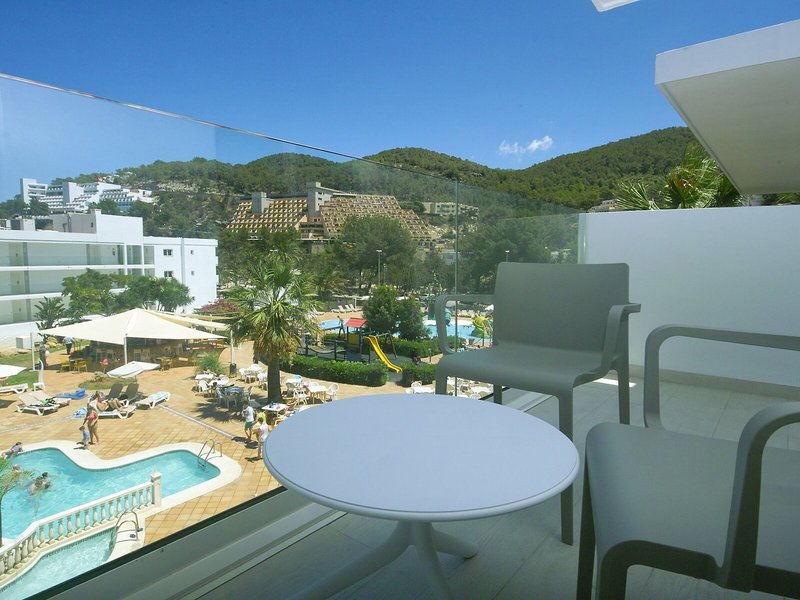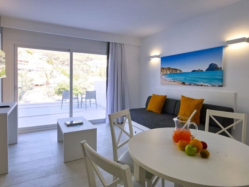 Elhelyezkedés és környezet: Az apartmankomplexum kiváló helyen, San Miguel turisztikai központjában található. A homokos strand közvetlenül a komplexum előtt található. A Playa Benirras körülbelül 3 km-re található. Számos bevásárló- és szórakozási lehetőség található a közvetlen közelben. Az Ibiza repülőtér körülbelül 30 km-re található.