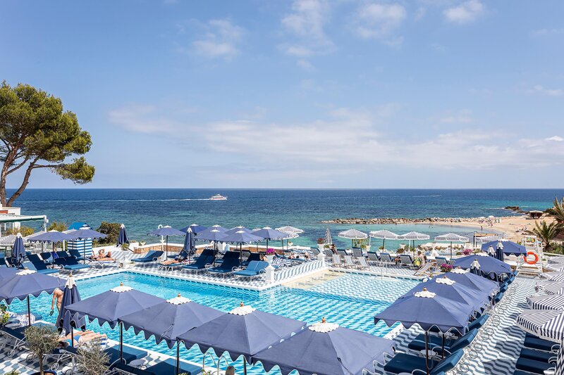Das Hotel befindet sich ca. 50 m vom Strand entfernt und wird von Pinienbäumen umgeben. Das Zentrum von Santa Eulalia del Río mit zahlreichen Einkaufs- und Unterhaltungsmöglichkeiten ist ca. 2 km entfernt. Der Flughafen von Ibiza liegt in etwa 25 km Entfernung.