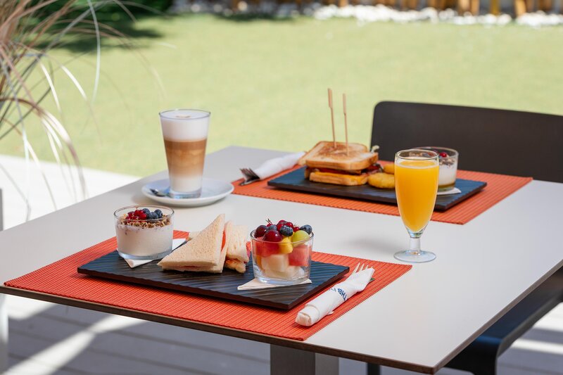 Mit Frühstück oder Halbpension buchbar. Halbpension beinhaltet das Frühstück und das Abendessen in Buffetform oder a-la-carte.