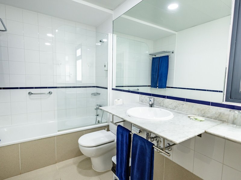 So wohnen Sie: In den Zimmern gibt es ein Wohnzimmer und ein Badezimmer, für angenehmes Raumklima sorgt eine Klimaanlage. Zur Standardausstattung der meisten Zimmer gehört ein Balkon, der zum Verweilen einlädt. Gemütlich schlafen können die Gäste auf einem Sofabett. Optional sind separate Schlafzimmer buchbar. Für Kinder können auf Wunsch Kinderbetten angefordert werden. Außerdem sind ein Safe und ein Schreibtisch verfügbar. Eine Kochnische mit einem Kühlschrank, einer Mikrowelle und einer Tee-/Kaffeemaschine ist ebenfalls standardmäßig vorhanden. Darüber hinaus sind ein Telefon mit Direktwahl, ein TV-Gerät mit Satelliten-/Kabelempfang und WiFi vorhanden. Im Badezimmer, ausgestattet mit einer Dusche und einer Badewanne, gibt es einen Haartrockner.