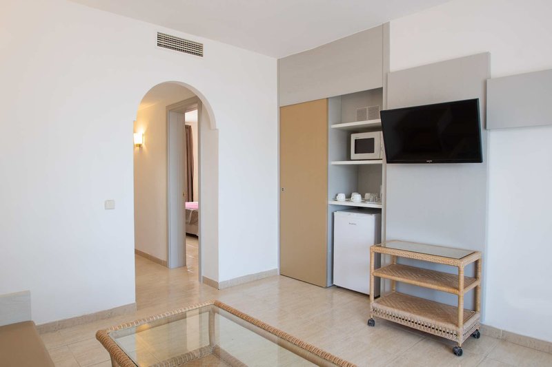Bungalow: Die Bungalows (ca. 39,5 m²) verfügen über einen kombiniertem Wohn-/Schlafraum (mit Schlafsofa für die 3. Person und klappbarem Schlafsessel für die 4. Person), ein separates Schlafzimmer, Klimaanlage, kleiner Kühlschrank und Mikrowelle, Wasserkocher, Telefon, Fernseher (Smart-TV), Mietsafe, Bad und Dusche/WC, Haartrockner und Terrasse. (B12/B1K/BK2/BKK)