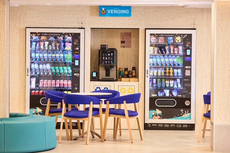 Die auf der Speisekarte aufgeführten Produkte werden auf einzelnen Tabletts serviert, die der Kunde an einem für die Lieferung vorgesehenen Servicepunkt abholen kann.