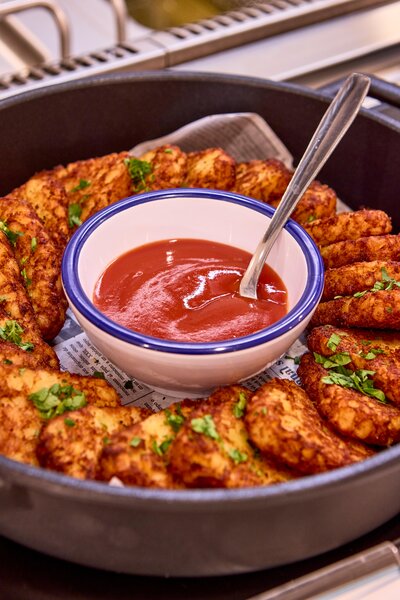 Az étlapon felsorolt termékeket külön tálcákon szolgálják fel, amelyeket a vásárló a kiszállításra kijelölt kiszolgáló ponton vehet át.