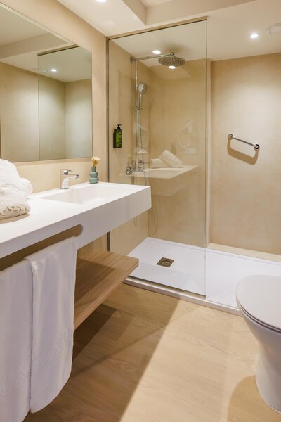 A kényelmes szobák káddal vagy zuhanyzóval/WC-vel, központilag szabályozott légkondicionálóval, telefonnal, műholdas TV-vel, bérelhető széffel és erkéllyel vagy terasszal rendelkeznek. Az egyágyas szobák kétágyas szobák, egy fő részére.