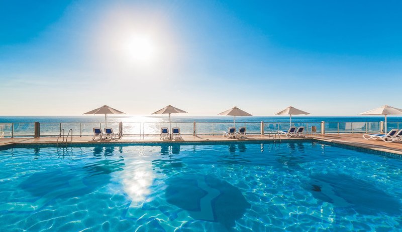 Ausstattung: Das beliebte Ferienhotel verfügt über 372 Zimmer auf 8 Etagen und bietet eine Lobby mit 24-h-Rezeption, 4 Lifte, 2 Aufenthaltsräume (einer mit Sat.-TV), 3 Bars sowie ein Restaurant. In der weitläufigen terrassenförmigen Außenanlage befindet sich die Poollandschaft mit separatem Kinderbecken, Liegewiesen und Sonnenterrassen mit Liegen und Schirmen. Außerdem steht Ihnen eine gemütliche Sitzterrasse mit Pool-/Snackbar zur Verfügung.