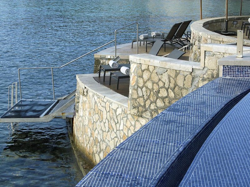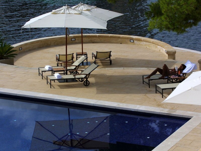 - Strand: napernyők, napozóágyak, sziklás strand