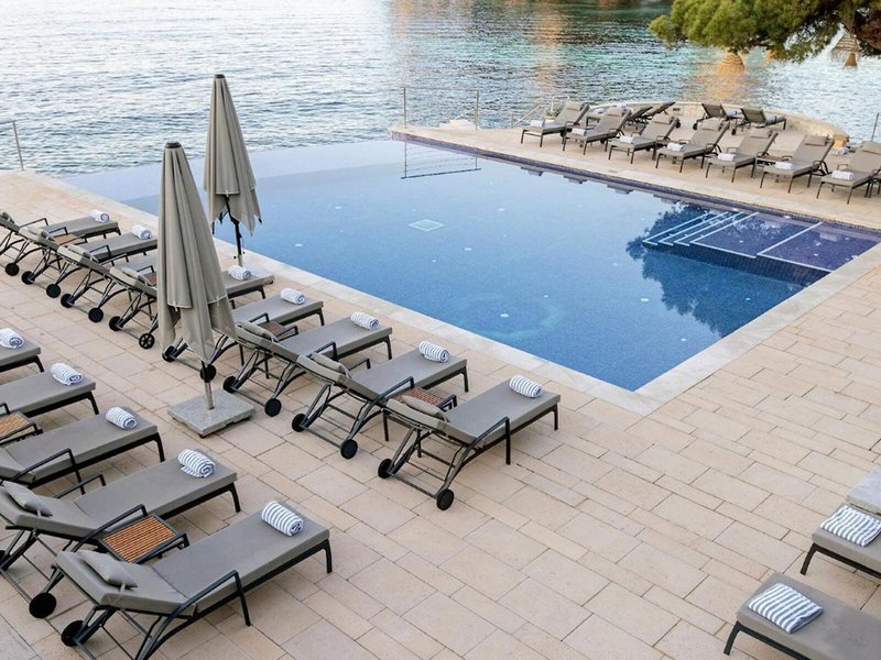 - Strand: napernyők, napozóágyak, sziklás strand