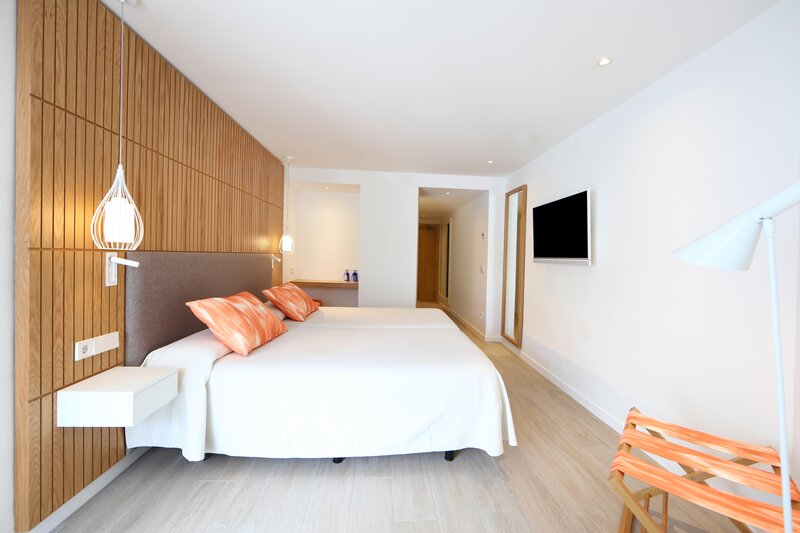 Die modern eingerichteten Doppelzimmer bieten Bad oder Dusche mit Föhn, WLAN (kostenfrei), Direktwahltelefon, Sat.-TV, Minibar (gegen Gebühr), Klimaanlage, Zentralheizung, Mietsafe, Sitzecke, Balkon oder Terrasse und sind wahlweise auch mit seitlichem Meerblick oder Poolblick buchbar. Die Doppelzimmer Superior sind bei gleicher Ausstattung geräumiger. Die Familienzimmer verfügen bei gleicher Ausstattung wie die Doppelzimmer über einen kombinierten Wohn-/Schlafraum mit Schlafcouch sowie ein separates Schlafzimmer. Einzelzimmer sind Doppelzimmer zur Alleinnutzung.
