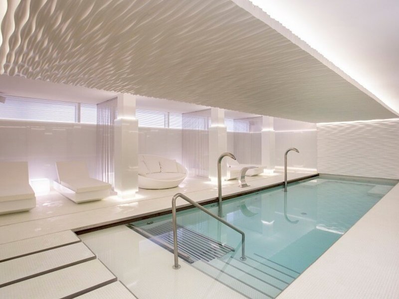 - Medencék: Fűtött kültéri medence, beltéri medence, kültéri medence, medence melletti napernyők, medence melletti nyugágyak