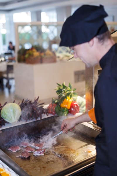 Verpflegung: Halbpension: Reichhaltiges Frühstück und Abendessen in Buffetform mit Show-Cooking.