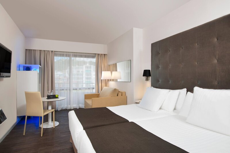 Az igényesen berendezett kétágyas szobák káddal és zuhanyzóval/WC-vel hajszárítóval, légkondicionálóval, telefonnal, műholdas TV-vel, WiFi-vel (térítés ellenében), minibárral, széffel, párnamenüvel, bútorozott erkéllyel rendelkeznek és tengerrel is foglalhatók. Kilátás. Az egyágyas szobák kétágyas szobák egyszemélyes használatra.