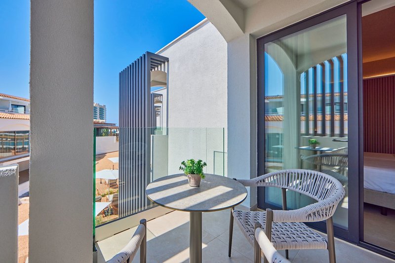 Junior lakosztály terasz: A kétágyas szobákkal megegyező felszereltséggel, tágasabbak nappalival és nyugágyakkal felszerelt terasszal (szobakód: TJS).