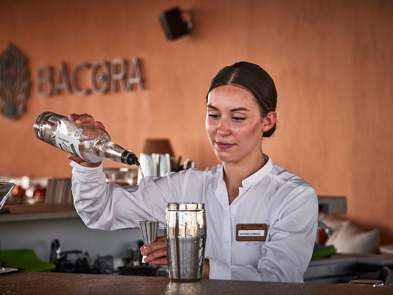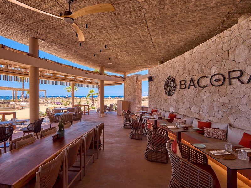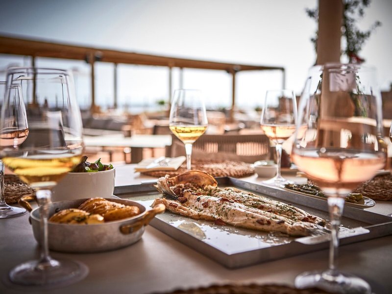 - Restaurant „BÀCORA“: Küche: international, mediterran, spanisch, Fisch/Meeresfrüchte, Kindermenü, vegetarische Gerichte, à la carte, gegen Gebühr, wetterabhängig, täglich 13:00 Uhr - 15:30 Uhr, am Pool