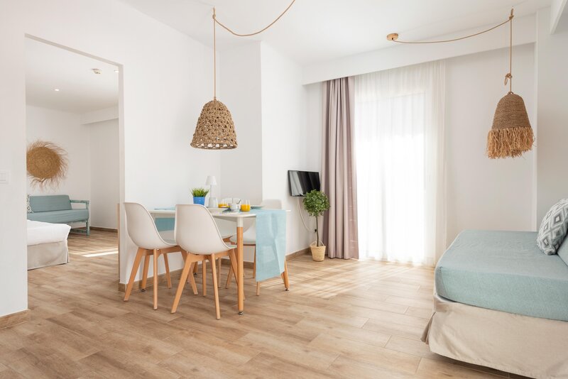 szobákban nappali, konyha és fürdőszoba található, légkondicionálás és fűtés gondoskodik a kényelmes szobaklímáról. A legtöbb szobához erkély vagy terasz tartozik. A szobákban egy franciaágy vagy egy kanapé található. Külön hálószobák vannak. Gyermekágyak ingyenesen állnak rendelkezésre. Bérelhető széf és íróasztal is rendelkezésre áll. Az önellátáshoz jól felszerelt konyhasarok hűtőszekrénnyel, minihűtővel, mikrohullámú sütővel, valamint tea- és kávéfőzővel felszerelt. Síkképernyős műholdas TV és Wi-Fi (ingyenes) is rendelkezésre áll. A fürdőszoba zuhanyzóval és hajszárítóval felszerelt. Különlegességként a vendégek kozmetikai termékeket és válogatott törölközőket élvezhetnek a fürdőszobákban.