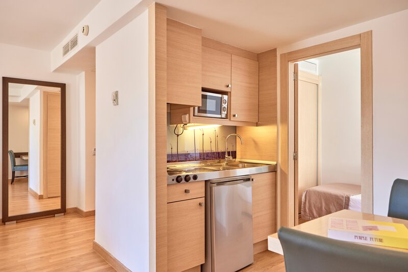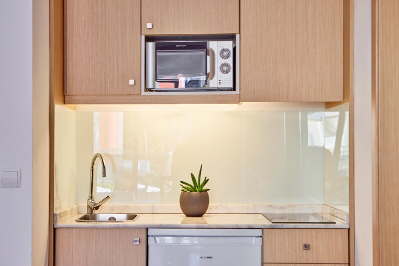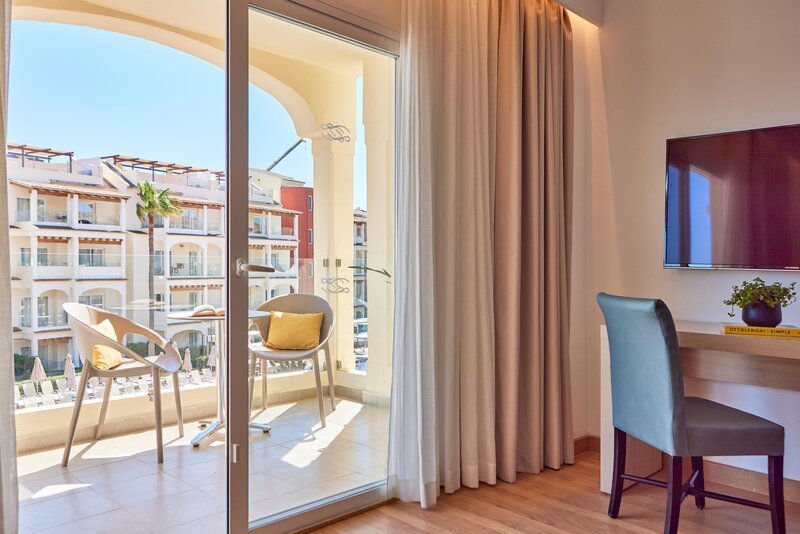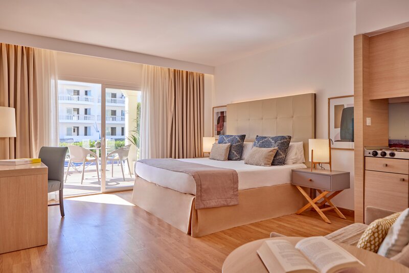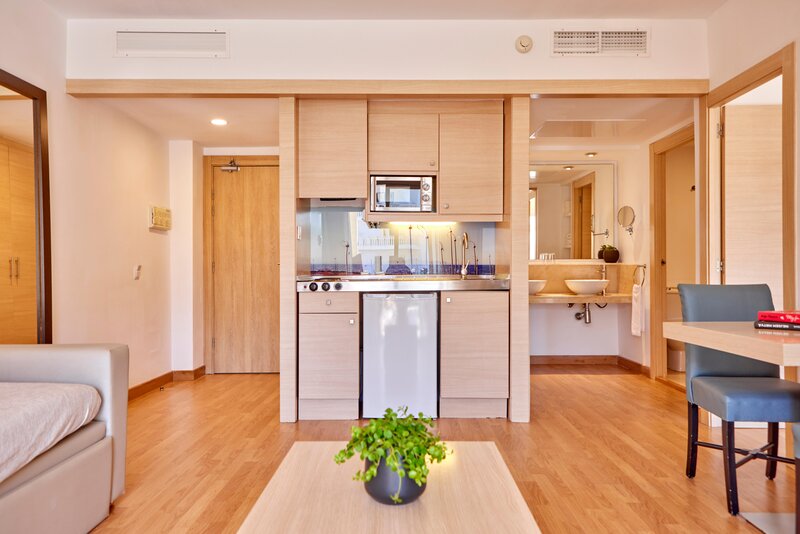 Die Zimmer sind ausgestattet mit Twinbett, Extrabett (Schlafsofa), Kitchenette, Mikrowelle, Wasserkocher (kostenlos), Balkon oder Terrasse, Internet (kostenlos), Safe (geg. Gebühr) und Sat-TV sowie zentral gesteuerter Klimaanlage und zentral gesteuerter Heizung. Badezimmer mit Dusche.