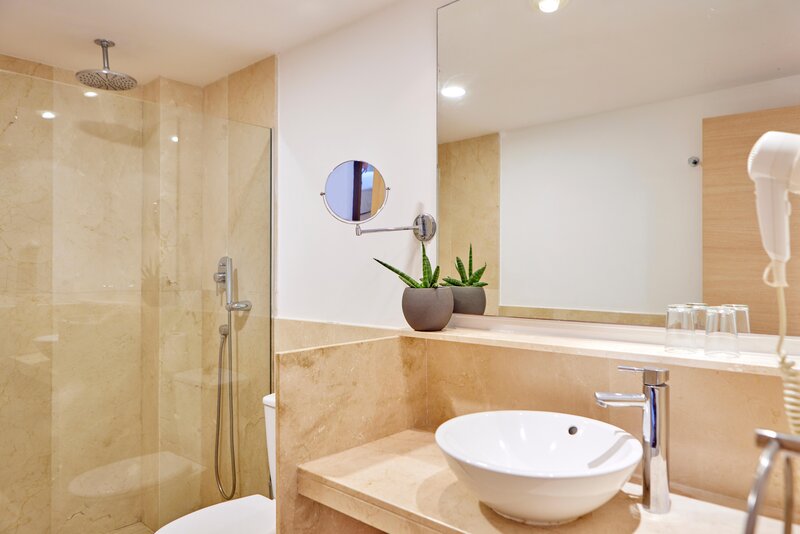 szobákban két egyszemélyes ágy, egy pótágy (kanapé), konyhasarok, mikrohullámú sütő, vízforraló (ingyenes), erkély vagy terasz, internet-hozzáférés (ingyenes), széf (felár ellenében), műholdas TV, központilag szabályozott légkondicionáló és fűtés található. A fürdőszobákban zuhanyzó található.