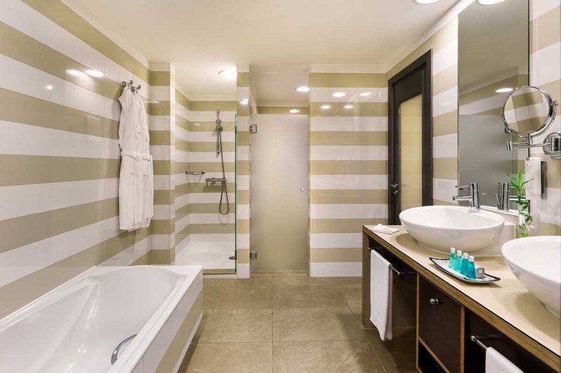 Superior lakosztály tengerre néző kilátással: Modern dizájn, nappali és hálószoba tengerre néző kilátással. Tágasabb, káddal és külön zuhanyzóval (az egyik hidromasszázs káddal) rendelkezik. A reggeli az à la carte étteremben benne van az árban. (Felújítva 2025 nyarán) (SU2).