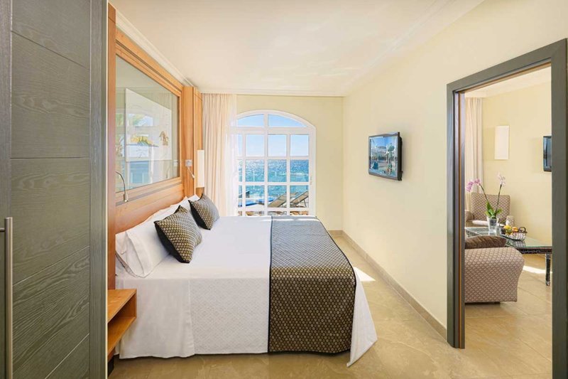 Ausstattung: Das direkt am Meer gelegene Hotel verfügt über 100 Suiten und 171 Doppelzimmer verteilt auf 5 Gebäude, eine Empfangshalle mit einer 24-Stunden-Rezeption, sowie Lifts. Für das leibliche Wohl sorgen das Buffetrestaurant inkl. Show-Cooking, das mediterrane Poolrestaurant "La Cascada" sowie das Gourmetrestaurant "La Cùpula" mit atemberaubender Aussicht von der oberen Etage, als auch diverse Bars. In der botanischen Gartenanlage befinden sich 1 beheizter Meerwasserpool (28-29°C), 1 Süßwasserpool, 1 beheiztes Kinderbecken und 1 Whirlpool. Liegen und Schirme werden am Pool kostenfrei bereit gestellt. Wi-Fi innerhalb der Hotelanlage und eine kleine Internetecke mit 3 PC's inklusive.