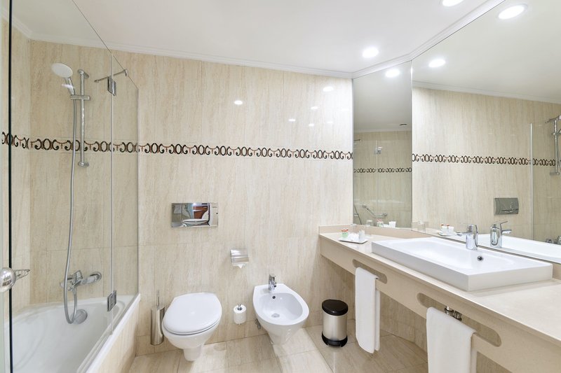 Kétágyas szoba: Kényelmes szobák (kb. 30 m²) légkondicionálóval, telefonnal, műholdas LCD TV-vel, bérelhető széffel, minibárral (térítés ellenében), fürdőkáddal/WC-vel hajszárítóval és erkéllyel vagy terasszal. A szálloda külső részén (földi oldalon) található (D).