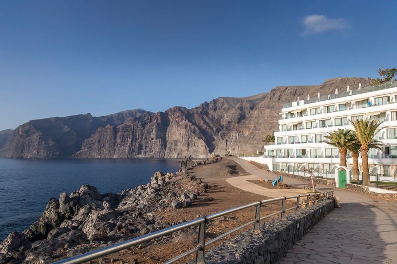 Ausstattung: Das Adults-only-Hotel (ab 18 Jahre) verfügt über eine kleine Empfangshalle mit Rezeption, Bars, Friseur, Schönheitssalon und ein im Jahr 2019 renoviertes Buffetrestaurant mit Blick auf Los Gigantes. Gegenüber befindet sich ein kleines Einkaufszentrum mit Geschäften, Bars, Pubs und Restaurants. Die weitläufige Sonnenterrasse mit 3 lagunenähnlichen Swimmingpools (1 im Winter beheizbar), Balinesische Betten (gegen Gebühr), Hydro-Massage-Wanne verfügt über Sonnenliegen, Sonnenschirme und eine Poolbar. Wi-Fi im Zimmer und an der Rezeption inklusive (schnellere Internetverbindung gegen Gebühr).