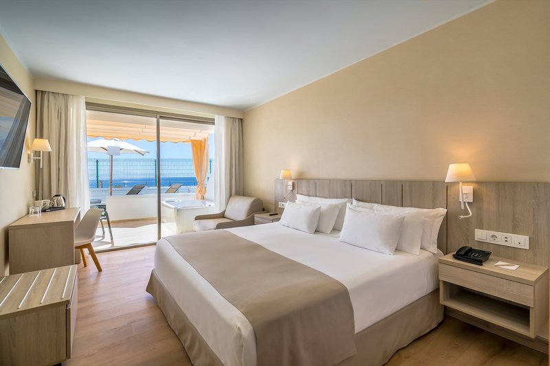 Doppelzimmer Superior Deluxe Meerblick: Sie sind hell und geräumig und verfügen über Bad/DU/WC, großen Balkon oder Terrasse, Sat.-TV/Plasma-Bildschirm, Telefon, Kaffee-/Teezubereiter, Safe (inkl.), Wi-Fi (inklusive), Klimaanlage, Minibar (gegen Gebühr und auf Anfrage). Zustellbett für 3. Person möglich. Die Zimmer sind renoviert, in den oberen Etagen gelegen und verfügen über Meerblick (2DQ).