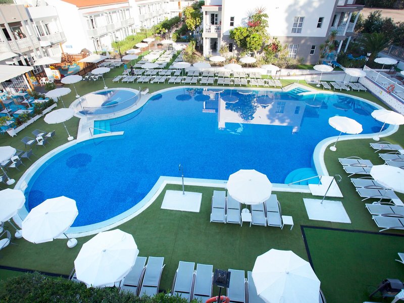 Sport & Fitness: Neben Innen- und Außenpools gibt es einen Kinderbadebereich. Schirme auf der Sonnenterrasse stehen ebenfalls für die Gäste bereit. Wem der Sinn nach Bewegung steht, werden Minigolf und Bogenschießen angeboten. Mit Wasseraerobic und Aqua-Fitness spricht das Apartmenthotel auch Wassersportler an. Die Unterbringung bietet eine Vielzahl an Möglichkeiten zur sportlichen Aktivität im Indoor-Bereich, z.B. Darts, Yoga und Aerobic sowie gebührenpflichtig Tischtennis und Billard. Ein Animationsprogramm, ein Miniclub, eine Minidisco, Live-Musik und eine Disco sorgen für besten Freizeitspaß.