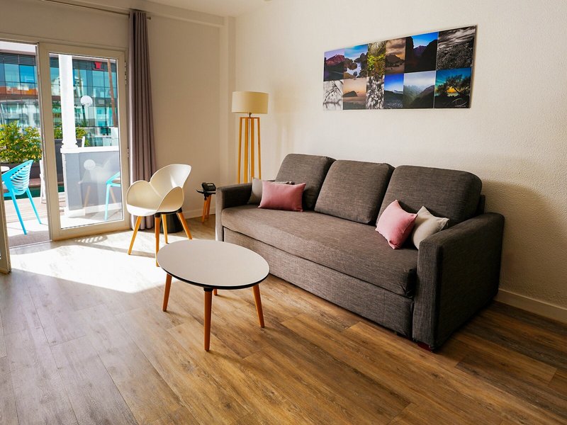 So wohnen Sie: Die Zimmer sind mit einem Wohnbereich, einer Küche und einem Badezimmer ausgestattet, außerdem sorgen eine Heizung und ein Ventilator für gutes Raumklima. Auf Balkon oder Terrasse lässt es sich für die Gäste herrlich entspannen. Es gibt separate Schlafzimmer. Kinderbetten für die jüngsten Gäste sind ebenso vorhanden. Außerdem sind ein Safe und ein Schreibtisch verfügbar. Auch ein Kühlschrank, ein Minikühlschrank, eine Mikrowelle und eine Tee-/Kaffeemaschine sind vorhanden. Für weiteren Komfort sorgt ein Steckdosenadapter. Zudem können die Gäste den Endreinigungsservice in Anspruch nehmen. In den Badezimmern gibt es eine Dusche. Ein Haartrockner, ein Kosmetikspiegel und ein Telefon stehen für den Gebrauch zur Verfügung. Buchbar sind rollstuhlgerechte Zimmer. Für Eltern mit Kindern stehen Familienzimmer zur Verfügung.