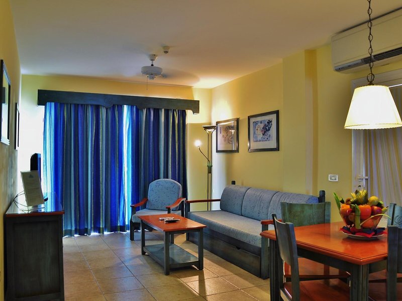 Szállás: A szobákban nappali, konyha és fürdőszoba található, melyekben ventilátor biztosítja a kellemes beltéri klímát. A legtöbb szobában alapfelszereltség az erkély. Külön hálószoba is foglalható. Babaágy és pótágy is biztosított. Széf és minibár is rendelkezésre áll. A konyhasarok jól felszerelt az önellátáshoz, hűtőszekrénnyel, tűzhellyel, mikrohullámú sütővel és tea-/kávéfőzővel. Ezenkívül közvetlen telefonvonal, TV és ingyenes WiFi is rendelkezésre áll. A zuhanyzóval és káddal felszerelt fürdőszobában hajszárító és telefon is található. A kényelem érdekében piperecikkek is rendelkezésre állnak. Néhány kerekesszékkel megközelíthető szoba akadálymentesített fürdőszobával rendelkezik. A szálloda 180 dohányzó és nemdohányzó szobát kínál.