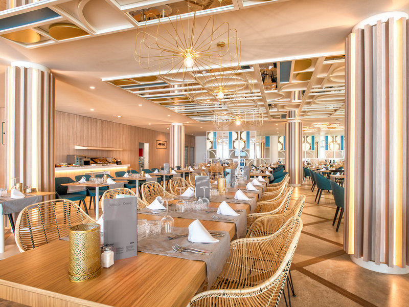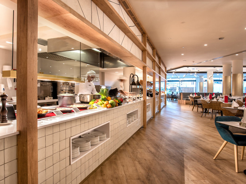 - Hauptrestaurant „Food Market“: Küche: international, landestypisch, spanisch, Diätküche: Anfrage notwendig, glutenfreie Gerichte: Anfrage notwendig, lactosefreie Gerichte: Anfrage notwendig, leichte Gerichte: Anfrage notwendig, vegetarische Gerichte: Anfrage nicht notwendig, vegane Gerichte: Anfrage notwendig, Vollwertkost: Anfrage notwendig, Buffet, à la carte, Showcooking, angemessene Kleidung erwünscht