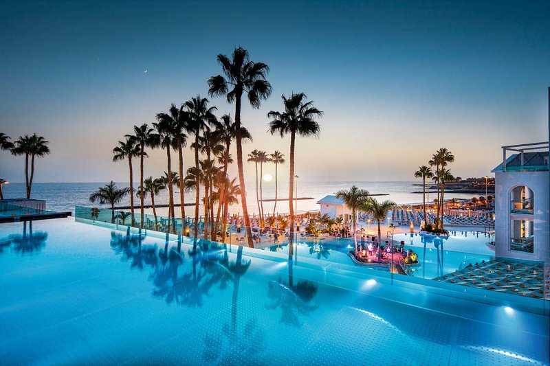 In der modern gestalteten Außenanlage mit Grünflächen und Palmen befinden sich zwei Swimmingpools (1 davon im Winter beheizt vom 1.11-30.4.) und ein weiterer Infinity Pool (im Winter beheizt vom 1.11.-30.4.) im Platinum Bereich mit Balibetten und atemberaubenden Blick auf der "Playa de Fañabé", den Hafen und die Nachbarinsel La Gomera.