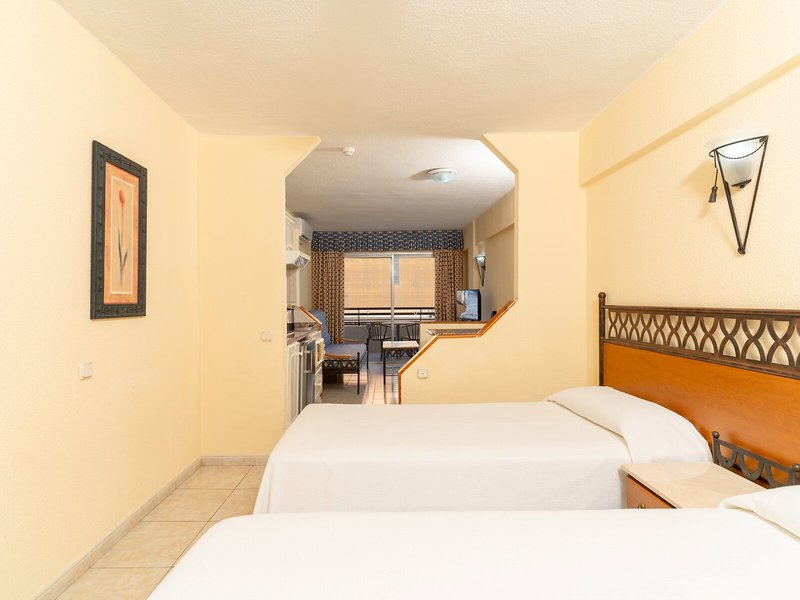 Lage & Umgebung Das Hotel befindet sich in der touristischen Ortschaft Playa de las Américas, etwa 500 m vom Strand entfernt. In der Umgebung des Hotels liegen zahlreiche Einkaufsmöglichkeiten, Bars und Restaurants. Eine Bushaltestelle liegt etwa 200 m vom Hotel entfernt. Zum Flughafen Reina Sofia gelangen die Gäste nach ca. 18 km.