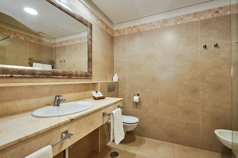 Juniorsuite: Mit ca. 36m² geräumig und modern ausgestattet, mit Klimaanlage, Minibar (gegen Gebühr und auf Anfrage an der Rezeption), Safe (gg. Gebühr), Sat.-TV, Wohnbereich mit Sitzecke (Schlafcouch für 3. Person) und Badezimmer mit Dusche/WC und Föhn, Balkon oder Terrasse mit Bergblick (JS2/JSI). Gegen Aufpreis auch mit Meerblick buchbar (J2M/JMI).