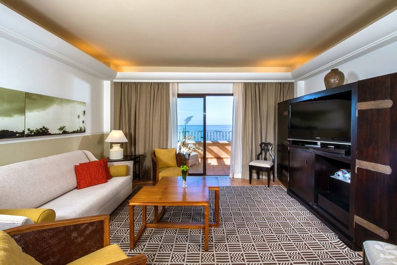 Junior lakosztály tengerre néző kilátással (kb. 65 m²): A kétágyas szobákkal megegyező felszereltséggel a junior lakosztályok gardróbszobával, Nespresso kávéfőzővel, king size baldachinos ággyal és tágas, bútorozott, tengerre néző erkéllyel is rendelkeznek. 5 vagy több éjszakás foglalás esetén vendégeink üdvözlő csomagot és személyenként/tartózkodásonként egy wellnesstúrát kapnak (Y2M).