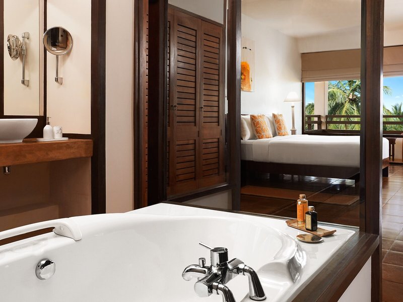 So wohnen Sie: Für angenehmes Raumklima in den Zimmern sorgen eine Klimaanlage und ein Ventilator. Die Gäste können den Meerblick von Balkon oder Terrasse genießen. Die Zimmer verfügen über ein Doppelbett, ein Queensize-Bett oder ein Kingsize-Bett. Es sind separate Schlafzimmer vorhanden. Auch Baby- und Zustellbetten können zur Verfügung gestellt werden. Außerdem sind ein Safe, eine Minibar und ein Schreibtisch verfügbar. Zur Erleichterung der Selbstversorgung zwischendurch gibt es in den Unterkünften einen Kühlschrank, einen Minikühlschrank und eine Tee-/Kaffeemaschine. Hinzu kommen ein Bügelset und eine Hosenpresse. Besten Urlaubskomfort bieten ein Telefon, Sat-TV, ein Radio, ein CD-Player, ein DVD-Player, ein Steckdosenadapter, ein Wecker und WiFi (ohne Gebühr). Zu den Vorzügen der Zimmer gehören Hausschuhe und die Tageszeitung. Im Badezimmer, mit einer Dusche und einer Badewanne ausgestattet, stehen für die Gäste ein Haartrockner und Bademäntel bereit. Als Besonderheit genießen die Gäste in den Badezimmern Kosmetikartikel und eine Auswahl an Handtüchern. Außerdem sind barrierefreie Badezimmer buchbar. Das Resort bietet Familien- und Nichtraucherzimmer.
