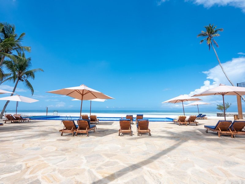 Lage & Umgebung Das Hotel befindet sich in Pwani Mchangani, an der nordöstlichen Küste der Insel. Es liegt nur rund eine Fahrtstunde von Hauptstadt Stone Town entfernt. Das Resort befindet sich auf einem lang gestreckten Hügel und bietet einen herrlichen Blick auf den Ozean. Das Hotel lässt sich einfach erreichen - nach rund 45 min Fahrtzeit erreichen die Gäste auf einer asphaltierten Straße den Flughafen.