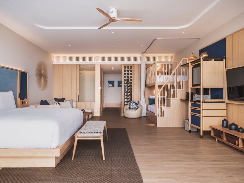 - Family Suite Pool Access (DZX1), Suite, Nichtraucherzimmer, Meerblick, Poolblick, ca. 91 m², Gesamtanzahl der Räume in diesem Zimmertyp: 1, Aufteilung wie folgt: kombiniertes Wohn-/Schlafzimmer, 1 King Size Bett (200x200cm), 1 Etagenbett (120x200cm), Klimaanlage: ohne Gebühr, Januar - Dezember, zentral gesteuert, Heizung: zentral gesteuert, Fußboden: Laminat, Safe: ohne Gebühr, Deckenventilator, Sofa, Bügeleisen, Bügelbrett, Nespressomaschine, Kaffee-/Teezubereiter, Minibar: gegen Gebühr, Softdrinks: gegen Gebühr, Wasser: ohne Gebühr, alkoholische Getränke: gegen Gebühr, Snacks: gegen Gebühr, Minibarauffüllung: 08:00 Uhr - 18:00 Uhr, Telefon, Internet: WLAN/WiFi: ohne Gebühr, Fernseher: Flatscreen, Sat-TV, Radio, iPod-Docking Station, Roomservice: täglich 24 Stunden, gegen Gebühr, Reinigungsservice: täglich 08:00 Uhr - 18:00 Uhr, ohne Gebühr, Dusche, Regendusche, Badewanne, WC, Bademantel: ohne Gebühr, Slipper: ohne Gebühr, Föhn, Kosmetikspiegel, Terrasse: mit Sitzgelegenheit, mit direktem Poolzugang