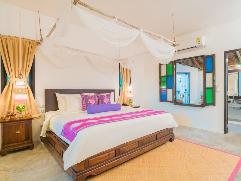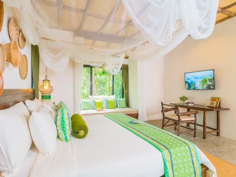 - One bedroom Garden View Villa (BUX2), Villa, Nichtraucherzimmer, Gartenseite, Gartenblick, ca. 95 m², letzte Teilrenovierung 2019, Gesamtanzahl der Räume in diesem Zimmertyp: 1, Aufteilung wie folgt: kombiniertes Wohn-/Schlafzimmer, 0 Doppelbetten, 1 King Size Bett, 1 Schlafsofa, 1 Zustellbett, Babybett: ohne Gebühr, Anfrage & Reservierung notwendig, Moskitonetz, Klimaanlage: individuell regelbar, Fußboden: Fliesenboden, Safe, Deckenventilator, Schreibtisch, Kühlschrank: ohne Gebühr, Kaffee-/Teezubereiter, Wasserkocher, Minibar: gegen Gebühr, Wasser: ohne Gebühr, Telefon, Internet: WLAN/WiFi: ohne Gebühr, Fernseher: Flatscreen, im Schlafzimmer, Kabel-TV, Roomservice: täglich 06:30 Uhr - 22:00 Uhr, gegen Gebühr, Reinigungsservice: täglich, ohne Gebühr, separate Dusche, Außendusche, separates WC, Bademantel: ohne Gebühr, Slipper: ohne Gebühr, Föhn, Kosmetikspiegel, Terrasse: mit Liegestühlen, mit Sitzgelegenheit